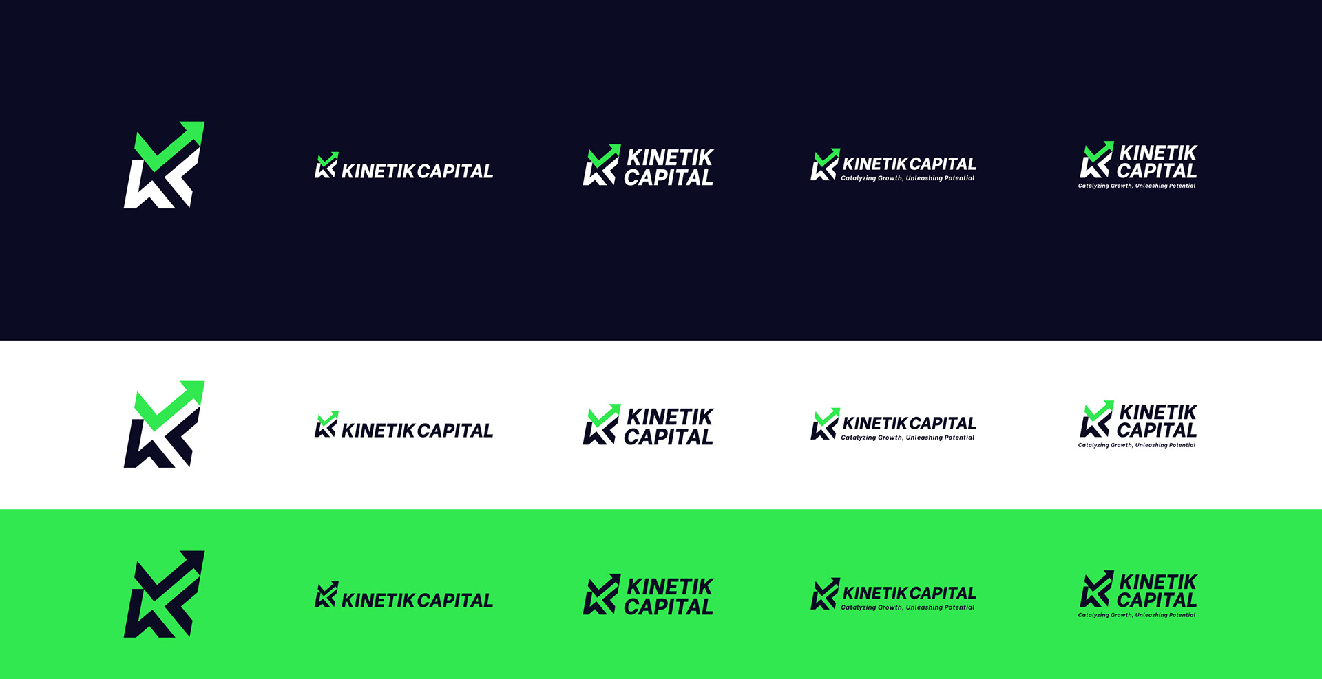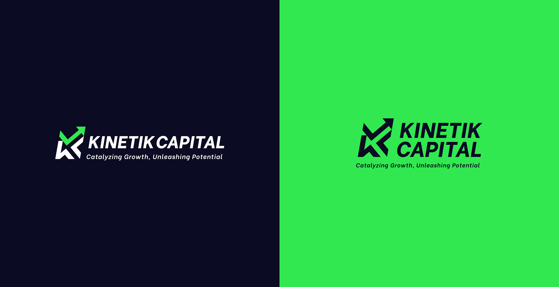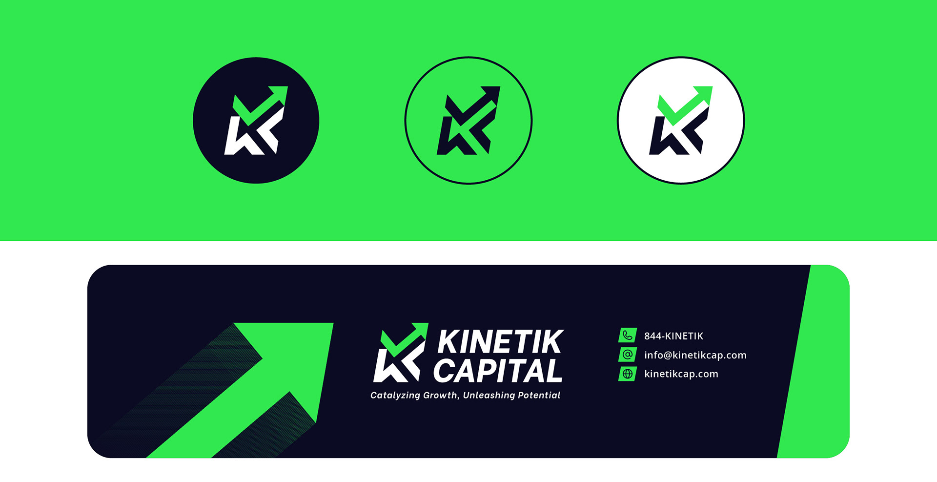 Kinetik Capital's logomark merges strategy and symbolism in a clean, scalable system.