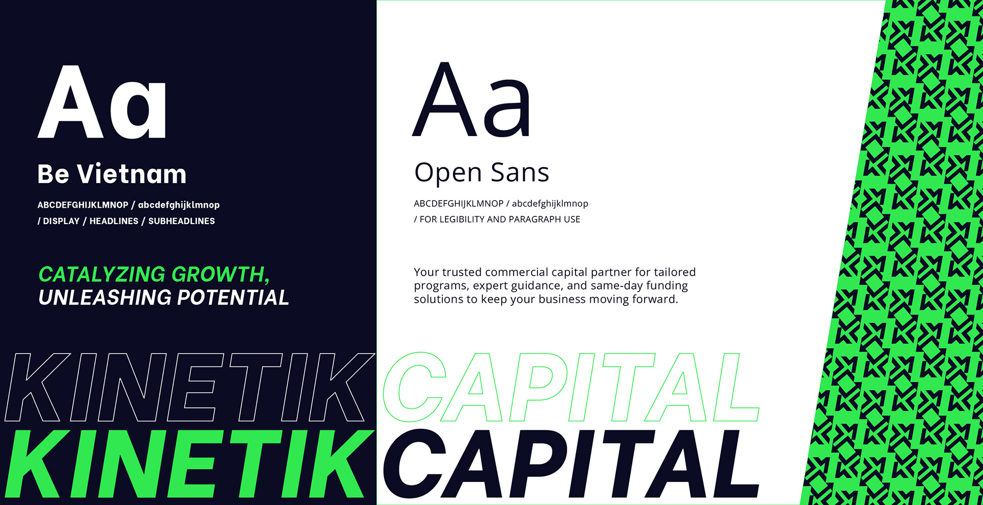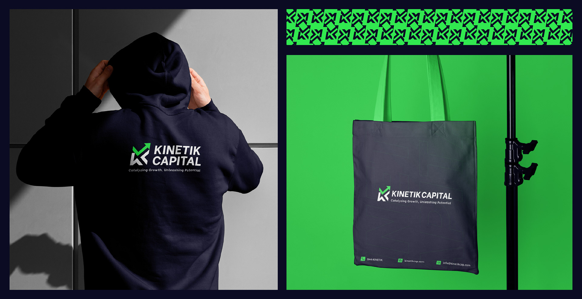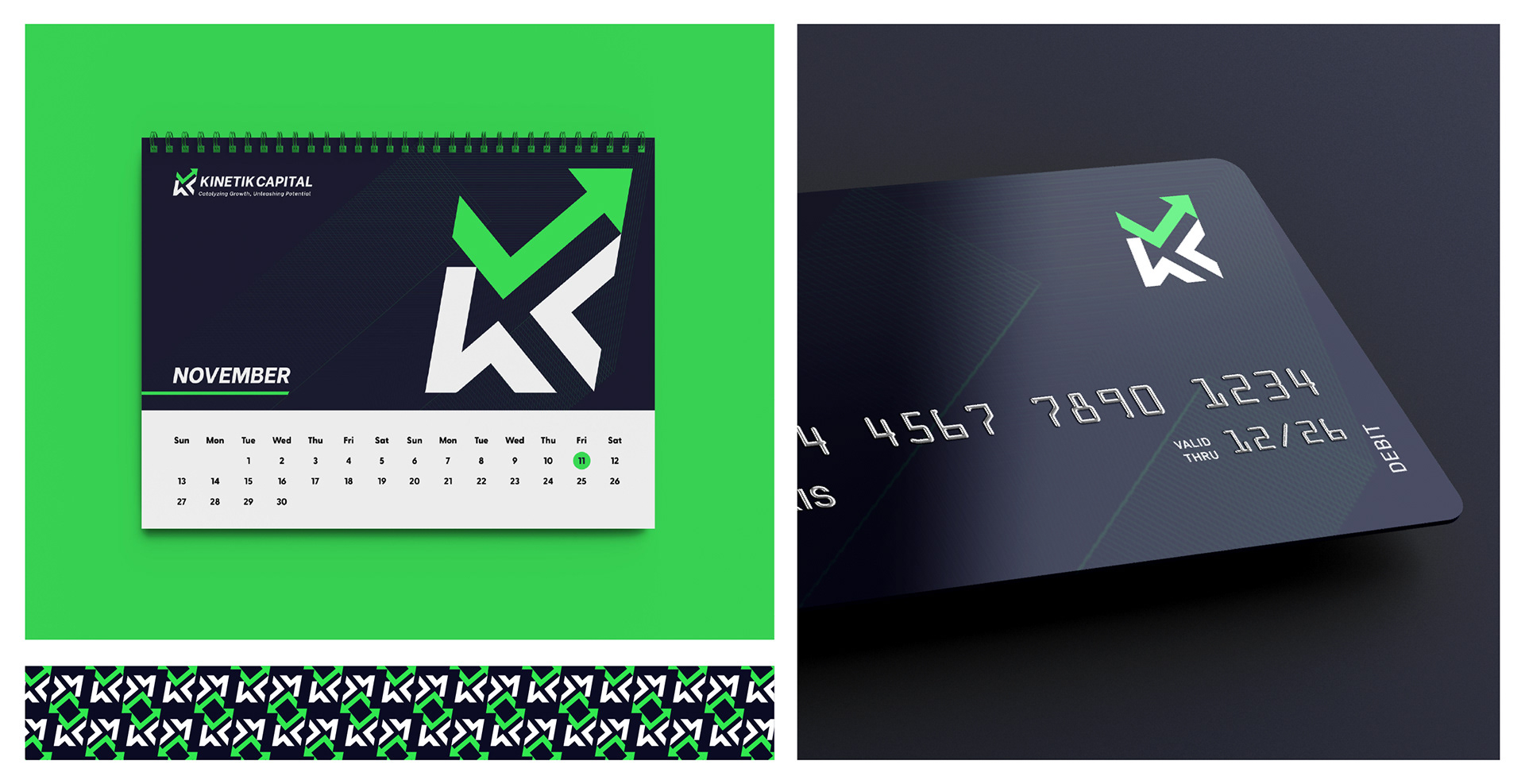 Kinetik Capital's logomark merges strategy and symbolism in a clean, scalable system.
