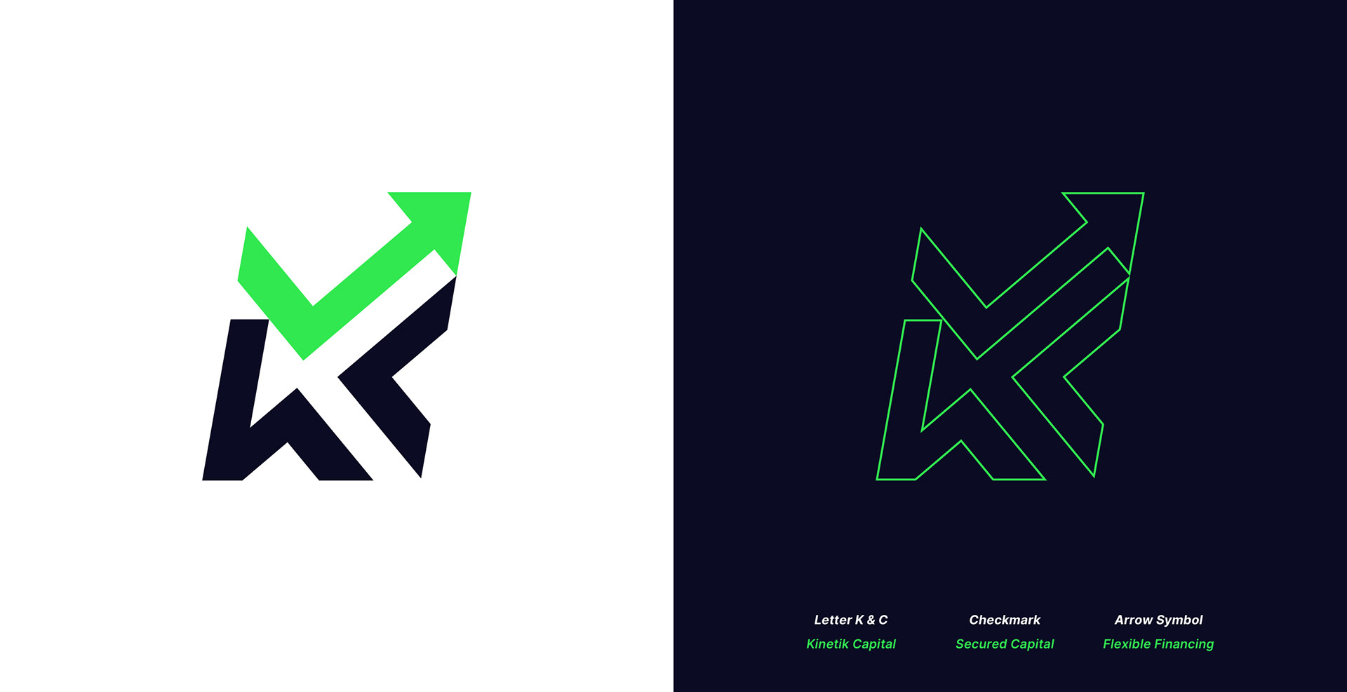 At its core, the symbol fuses the letters K and C, subtly integrating a checkmark (approval) and arrow (momentum). This fusion reflects Kinetik’s mission: secure capital, flexible direction, and fast action.