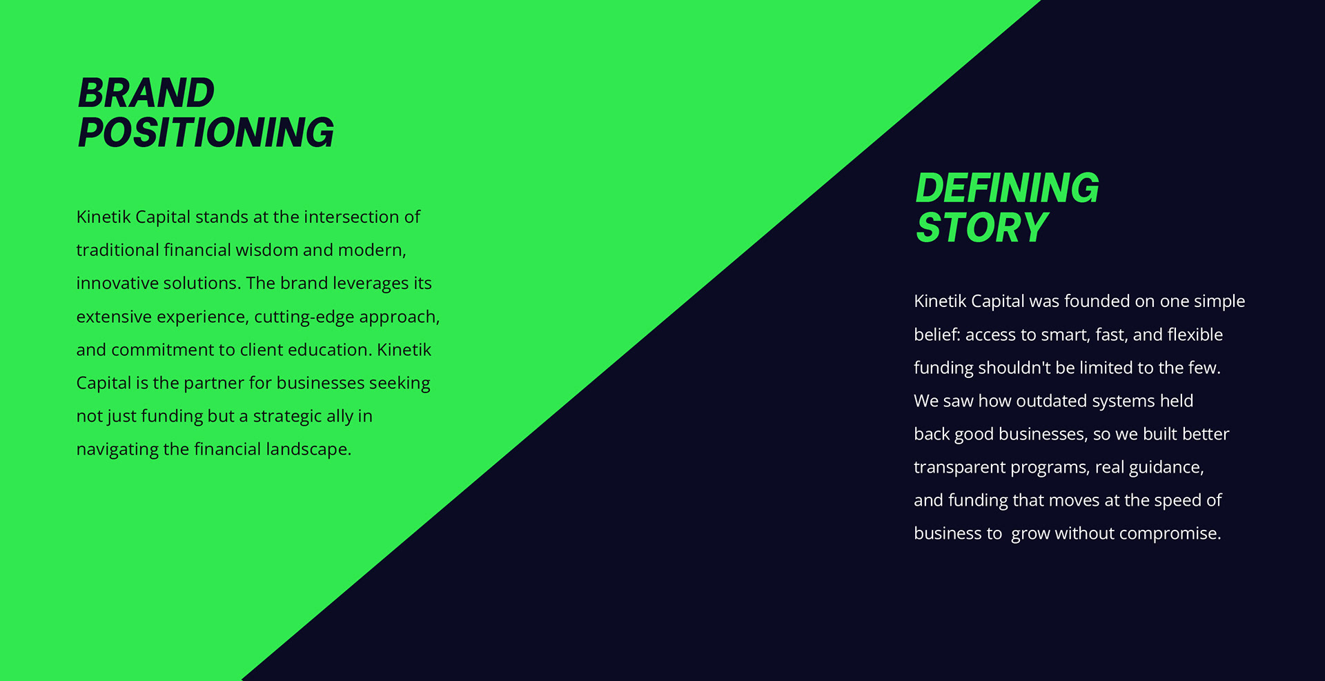 Kinetik Capital is a modern commercial finance company on a mission to unlock smarter, faster, and more flexible funding for everyday businesses. When the founders reached out, their ask was clear: help us stand out in a saturated, often stale industry without compromising on trust or clarity.